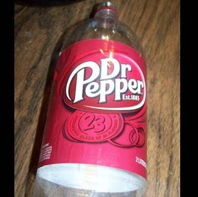 This is a case where necessity was the mother of invention - I needed a narrow funnel to fill a jar of bath salts that I made. (Left, out of a 2 liter bottle and right from a 1 liter bottle)